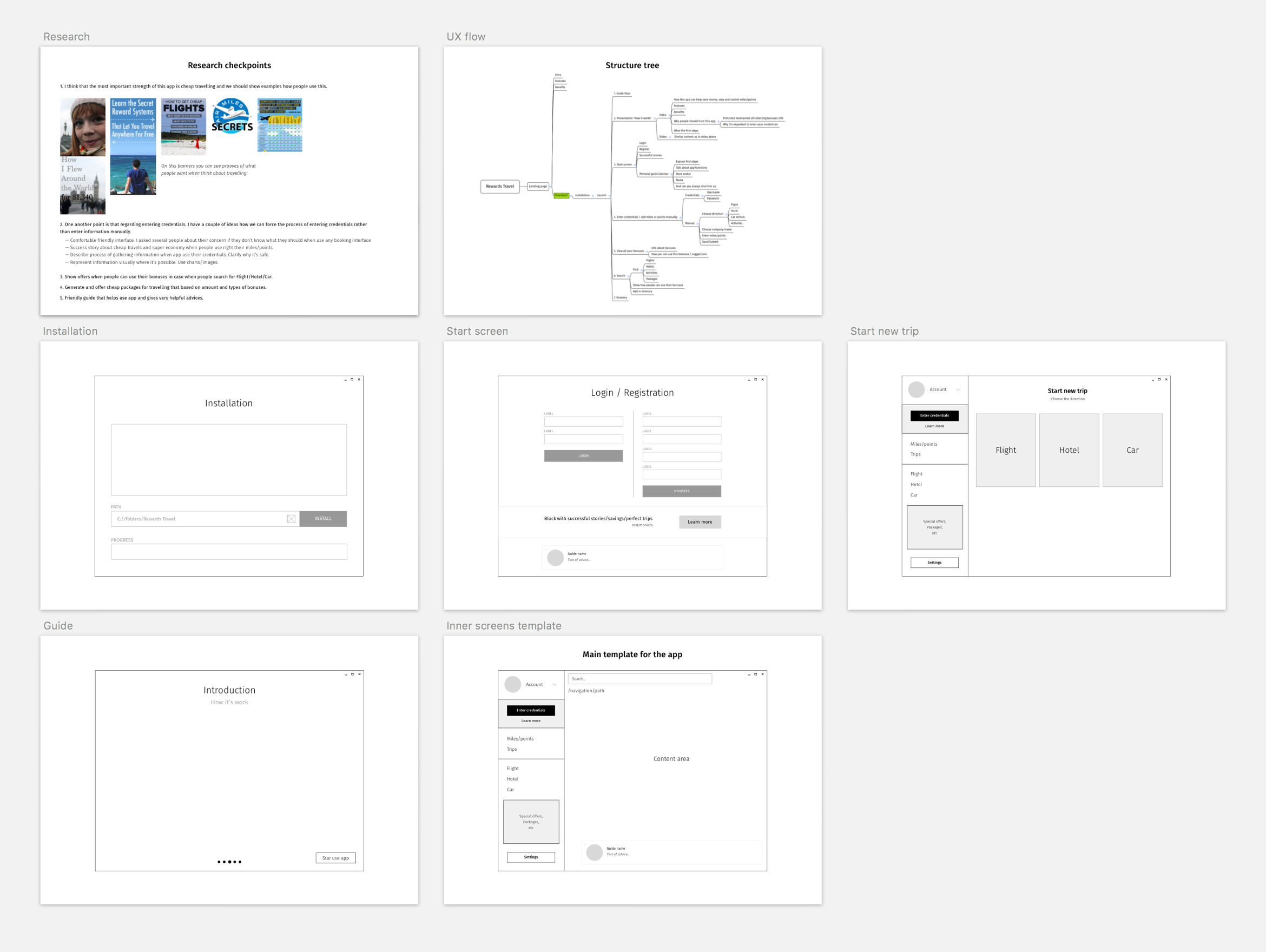 Research, user flow, initial wireframes