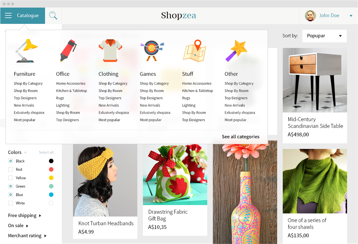 eCommerce Interface UI Design The goal of this project is to design clear web interface and comfortable atmosphere for buying products. Catalogue section All necessary filters of catalogue items are fixed in the right position of the screen. Each item has a well established photo of the product. In this way good quality photos provide sale effect. Category choice Flat icons help to improve a customers speed in making a decision regarding choice of category. Max S. UI Designer Client Reward Travel My role in this project was to design clear an experience and web interface eCommerce platform.
